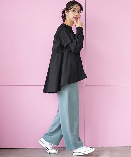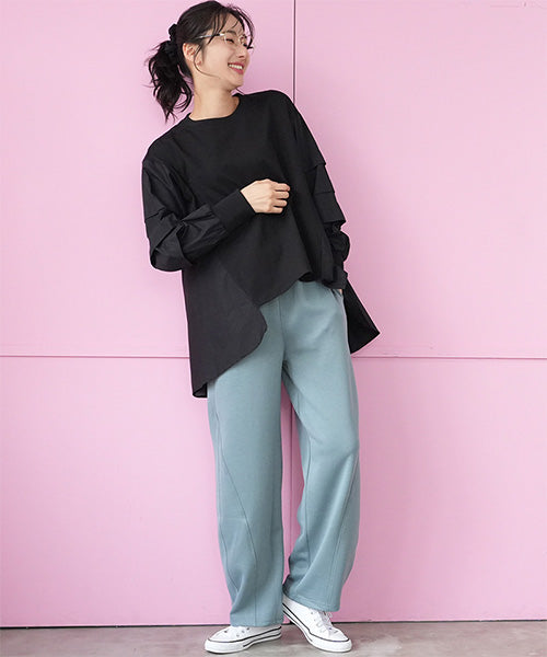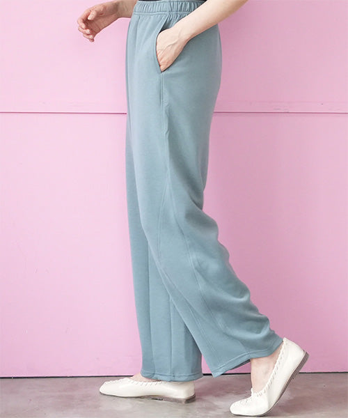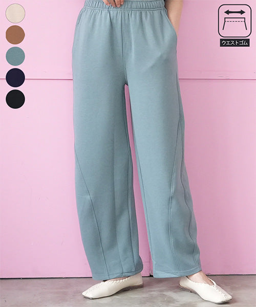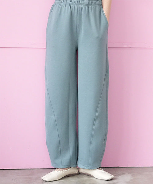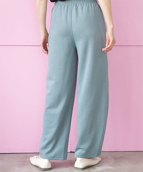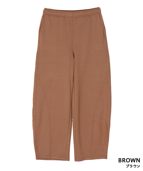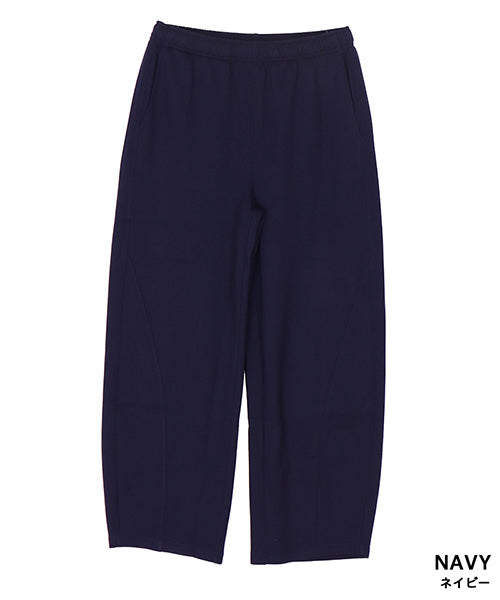 ほどよいハリとふくらみ感が特徴のダンボールニット素材を使用したイージーワイドパンツ。