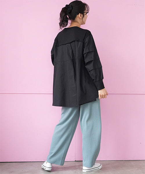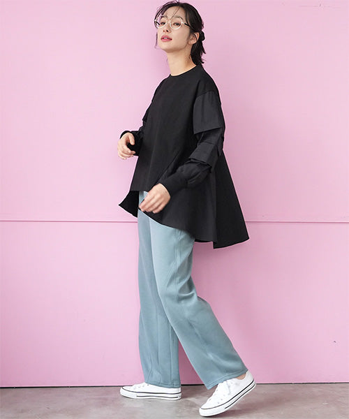 立体的な素材感がシルエットを美しく保ち、リラックスした穿き心地ながらもきれい見えを叶えます。