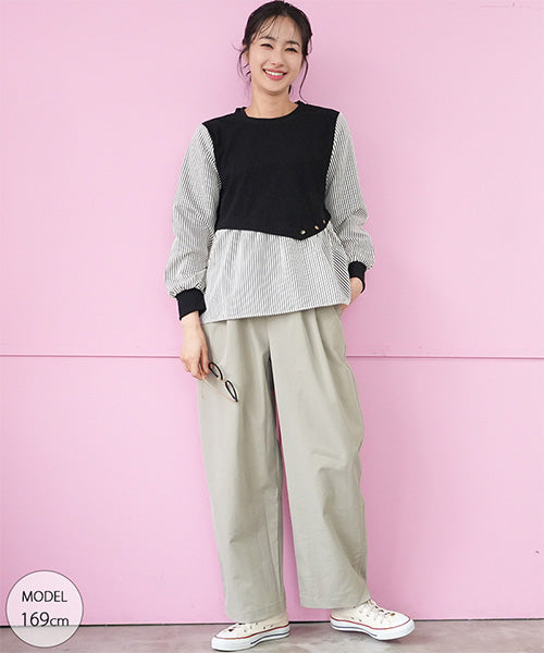 ウエストは総ゴム仕様で、程よいゆとりを持たせた快適なフィット感。