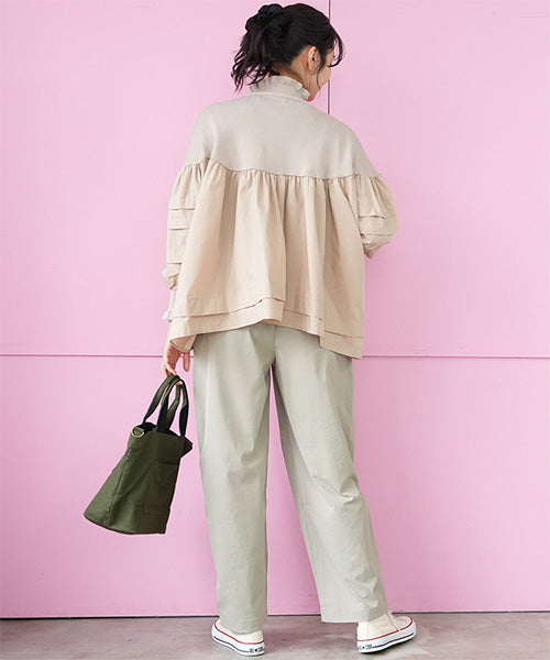 シンプルながら表情のある生地感が魅力で、カジュアルすぎず、ちょっときれいめな大人カジュアルスタイルを演出。