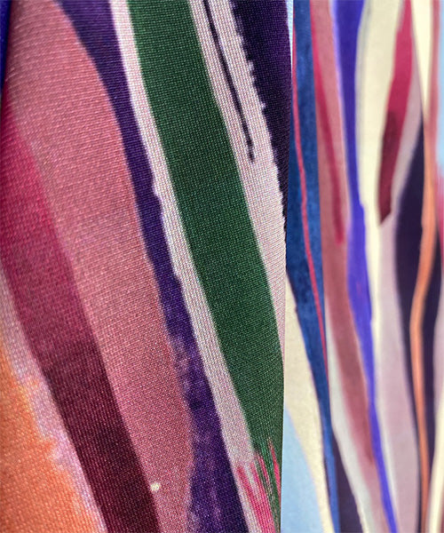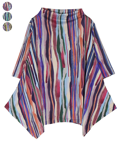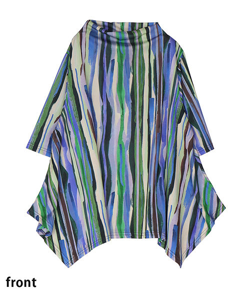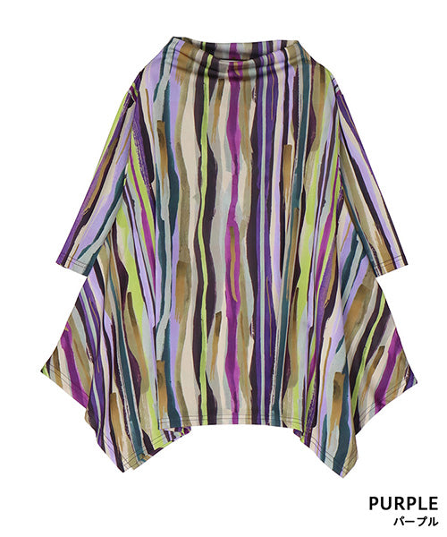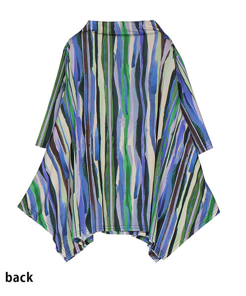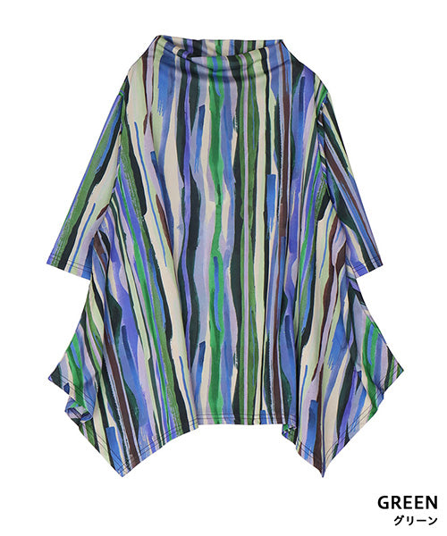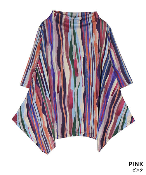 イレギュラー配色ストライププリントのショート丈カットソーです。