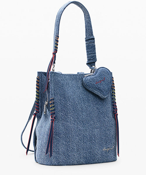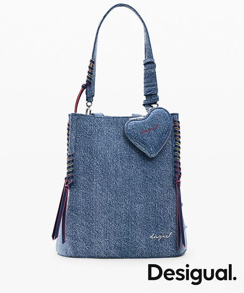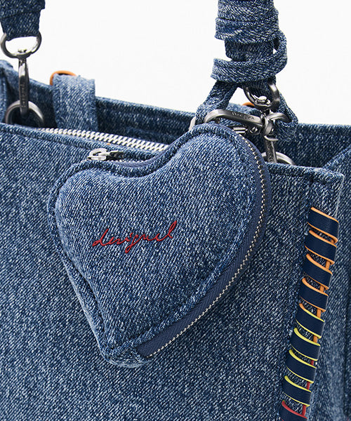 縁に編み込みのディテールがあり、取り外し可能なハート型コインパースチャーム付き。