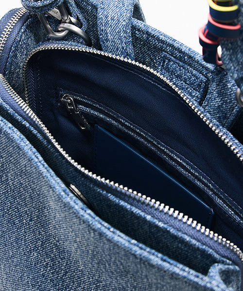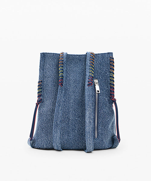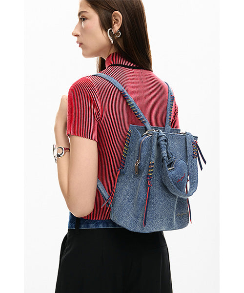 デニム生地の小さなバックパック。
