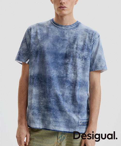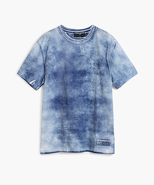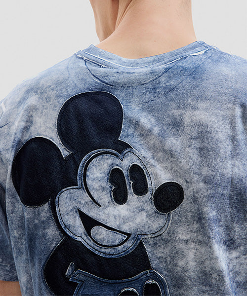 ブルーのグラデーションウォッシュ加工仕上げで、裾部分にミッキープリント入り。