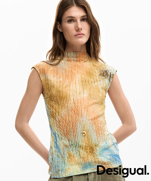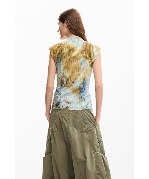 テクスチャー生地で仕立てた、抽象的なプリントのフィット感のある半袖Tシャツ。