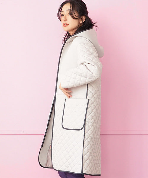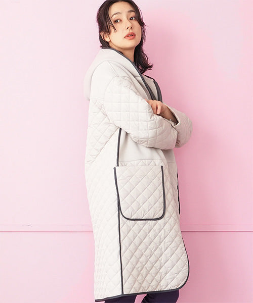 ゆとりのある身幅とひざ下まである丈感でボディラインを包み込んでくれます。