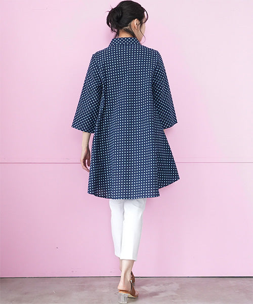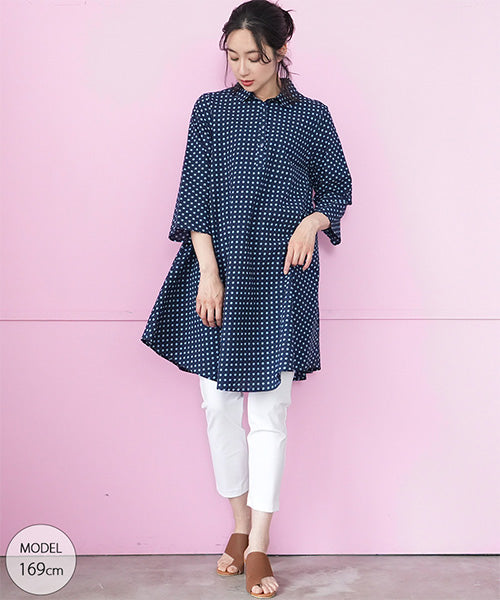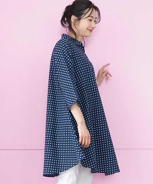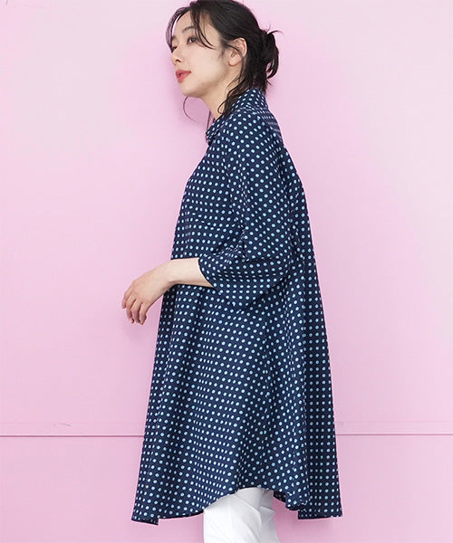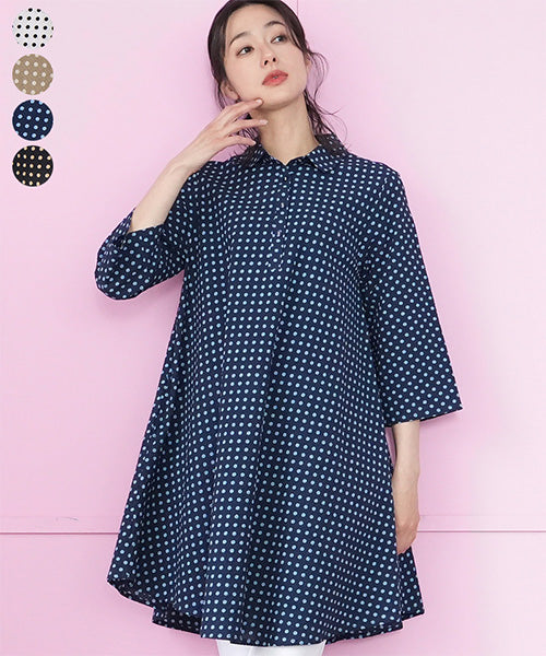 サラサラとしたサッカー地の、ドット柄チュニックブラウスです。