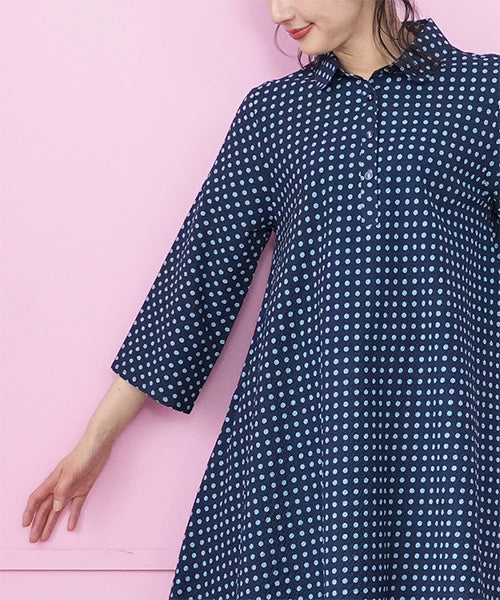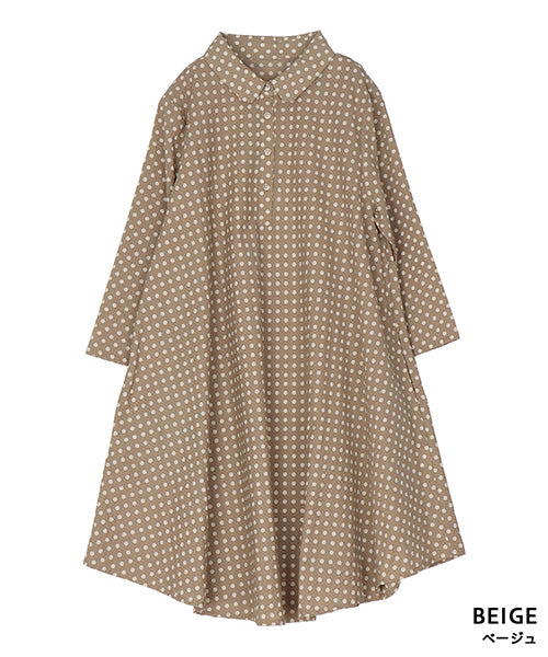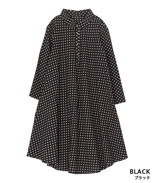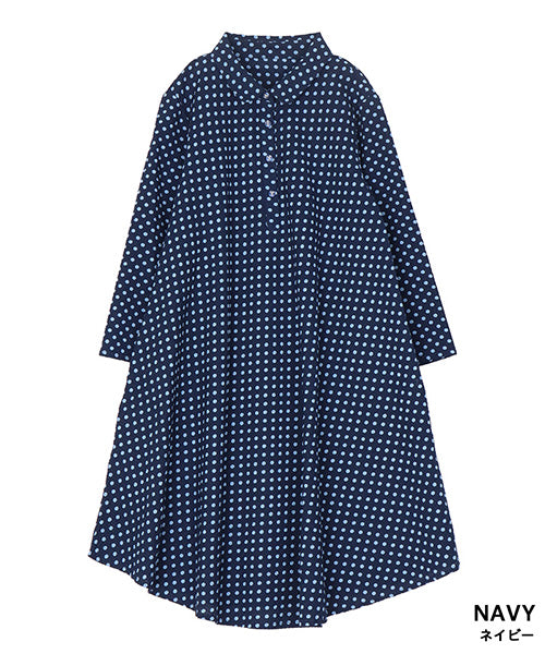 小さめラウンド衿とドット柄が、可愛い過ぎないデザインになっています。