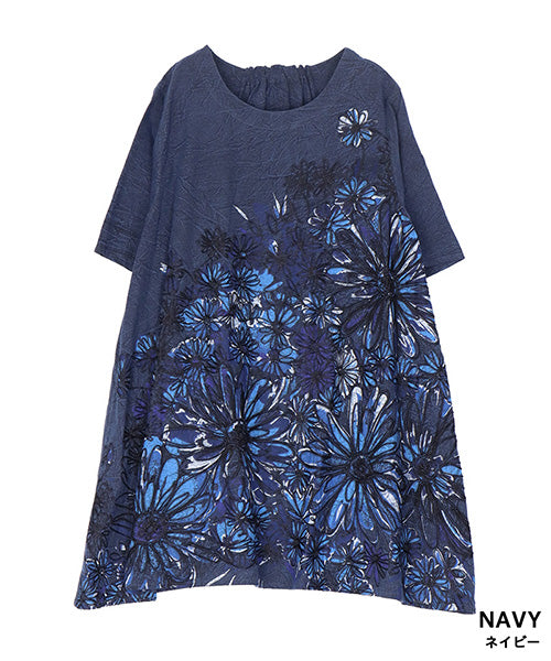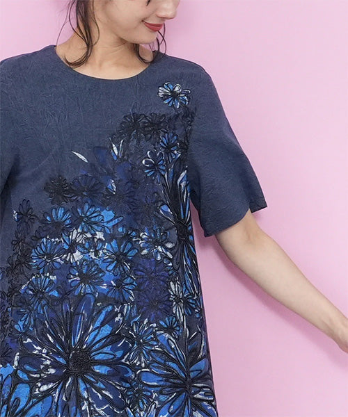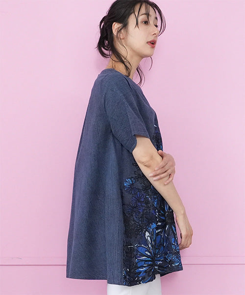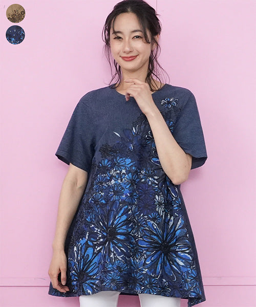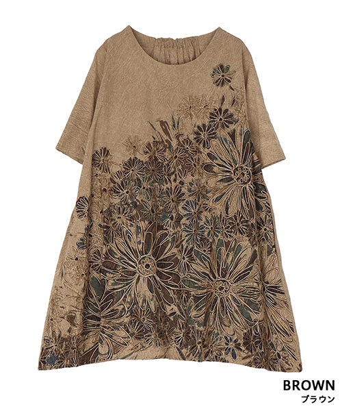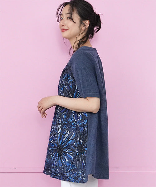 大胆に描かれたフラワープリント&刺繍が目を惹く、存在感たっぷりのチュニック。