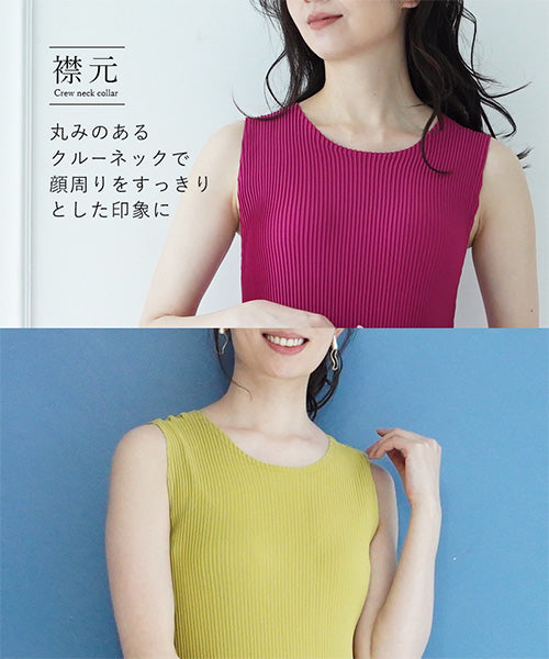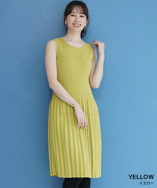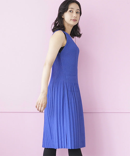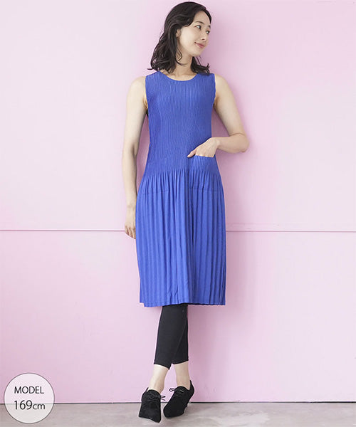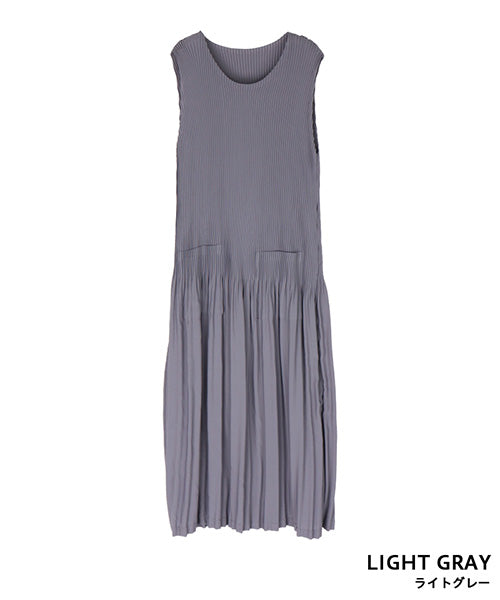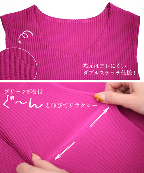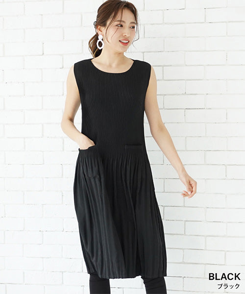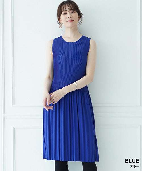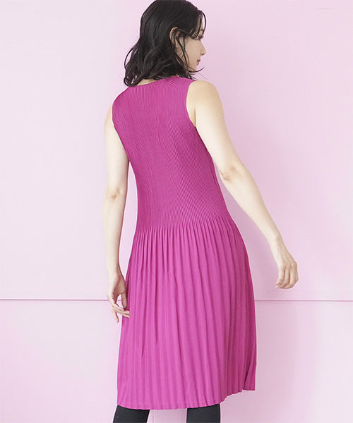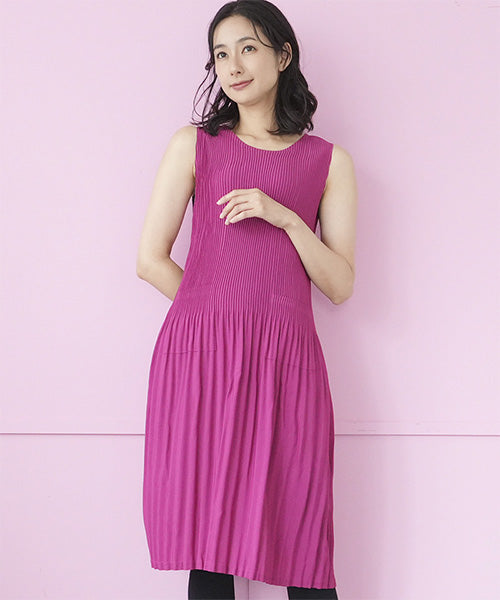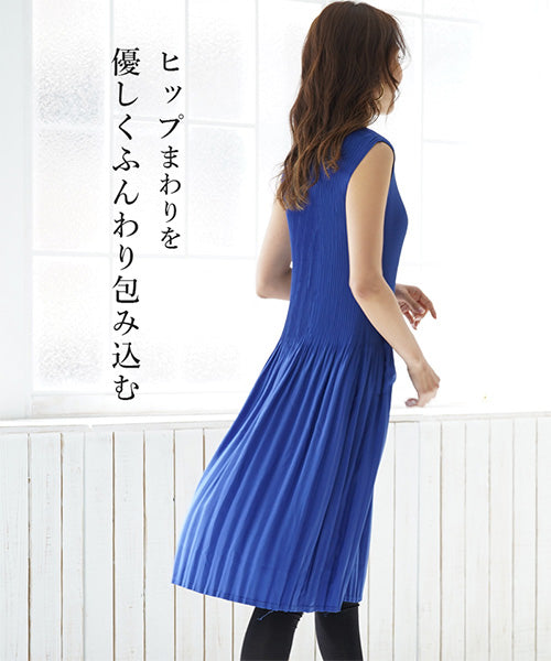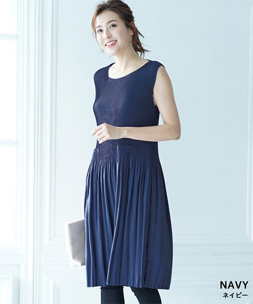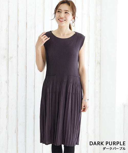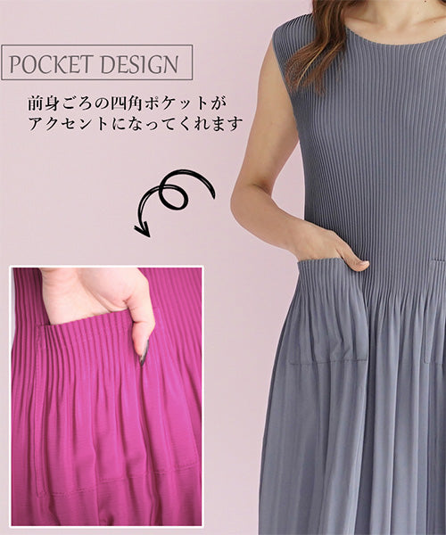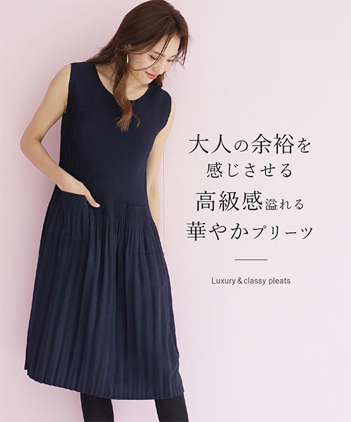カジュアルにもパーティーにも着回しできるプリーツが美しいノースリーブワンピース。
