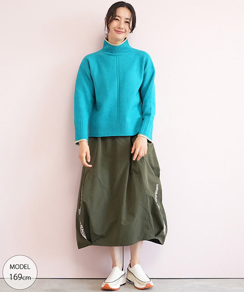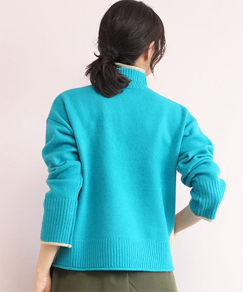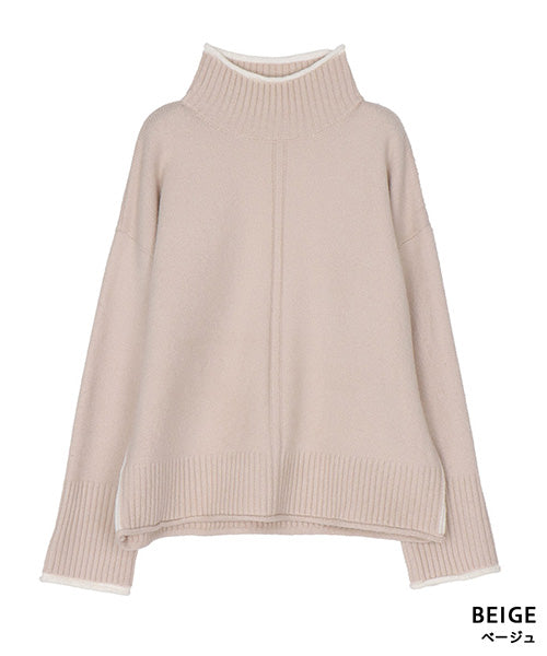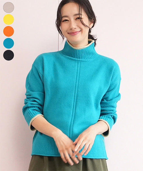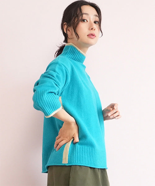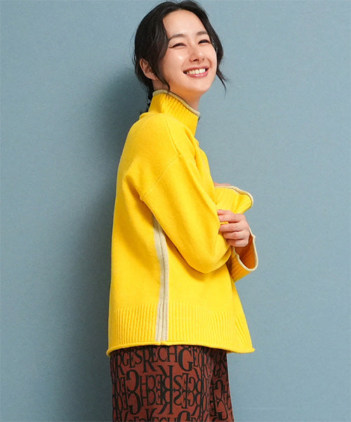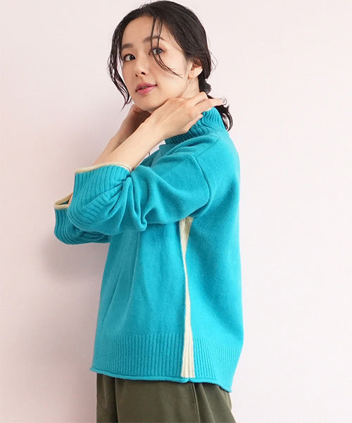 バイカラーの配色がアクセントになったニットプルオーバーです。 サイドやフロントの縦ラインが細見えを実現。 シンプルなデザインで幅広いスタイリングをお楽しみいただけます。