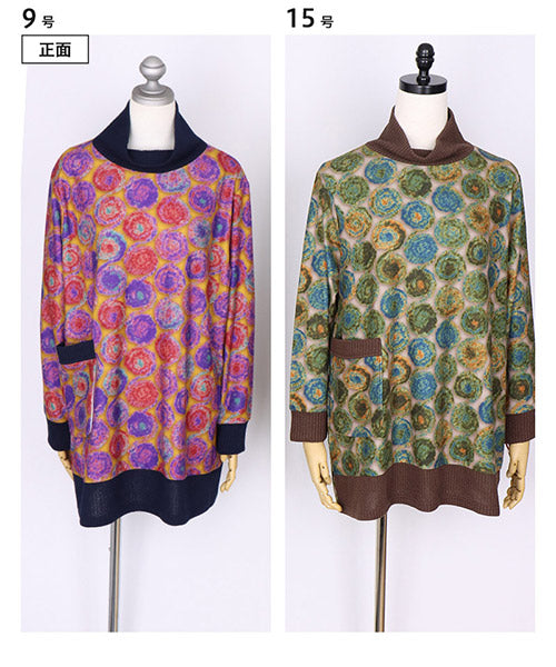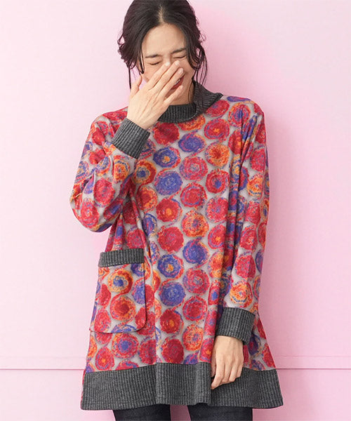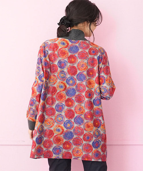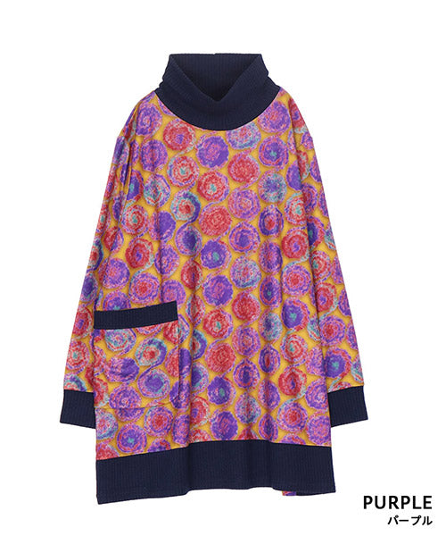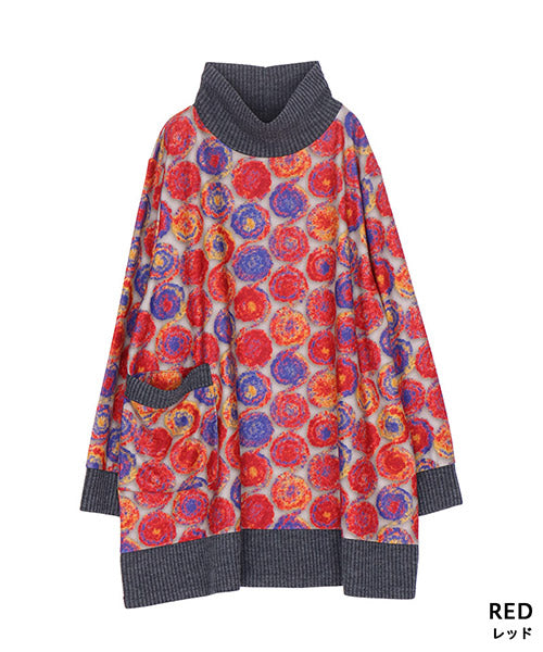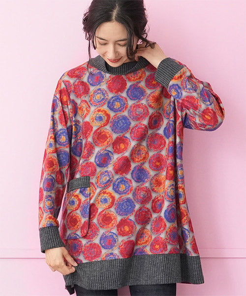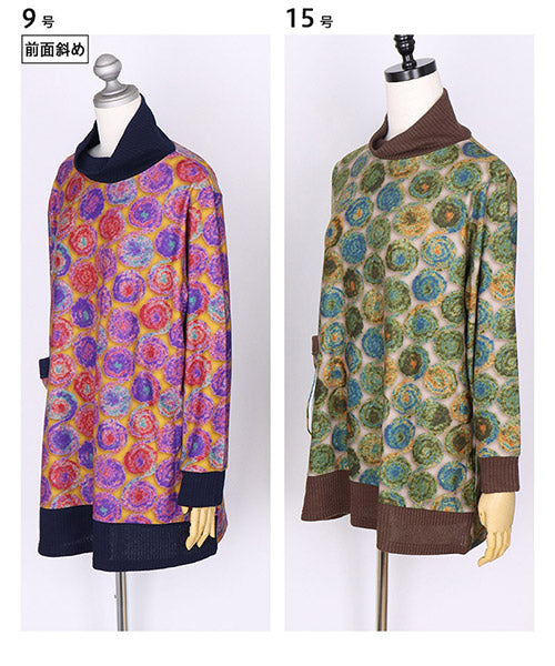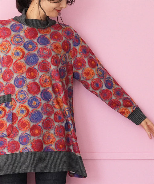 鮮やかなカラードット柄が目を惹くカットソー。