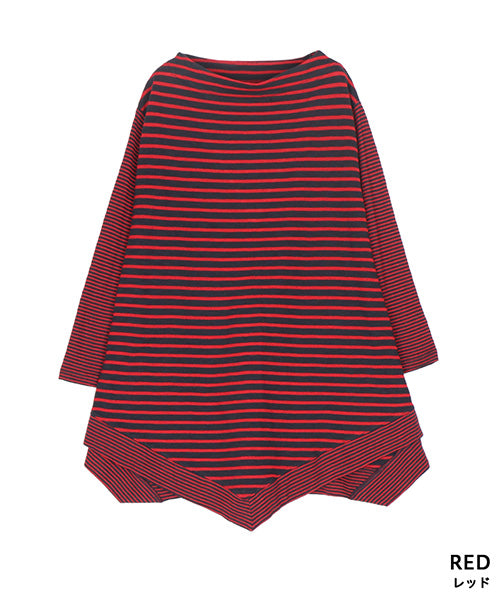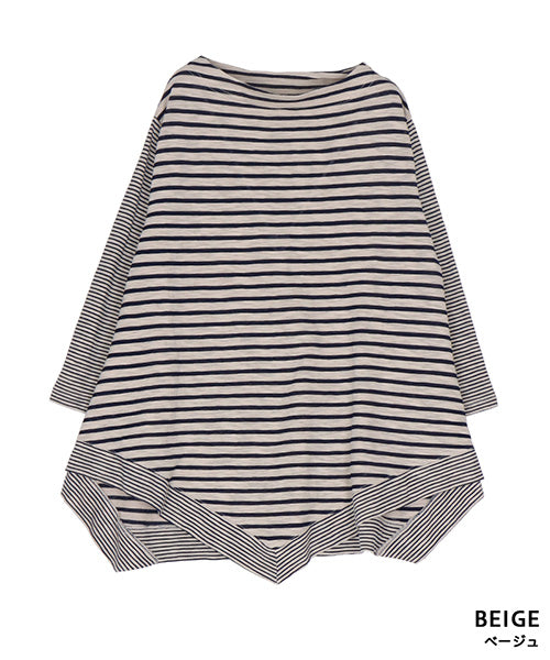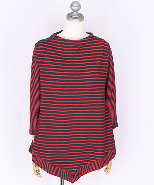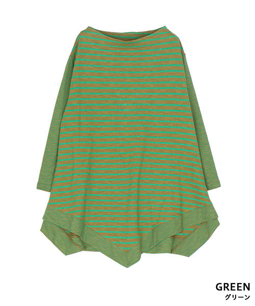 ボーダー柄イレギュラーヘムAラインカットソー 36-1760