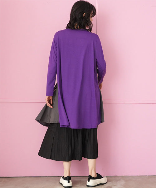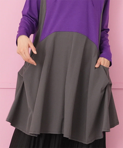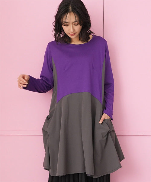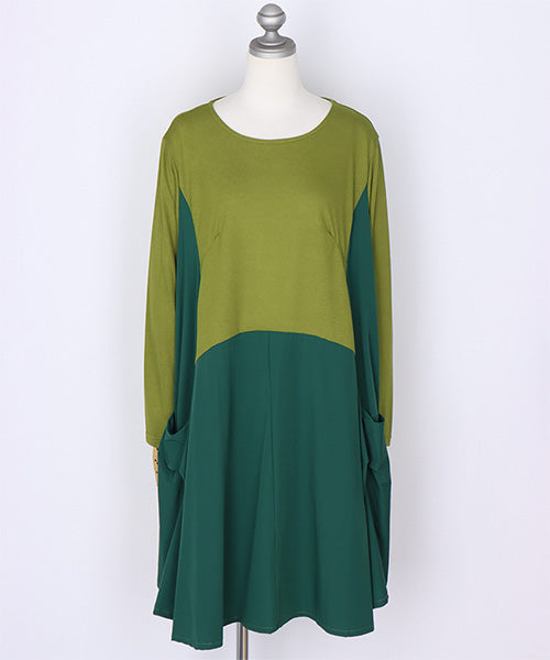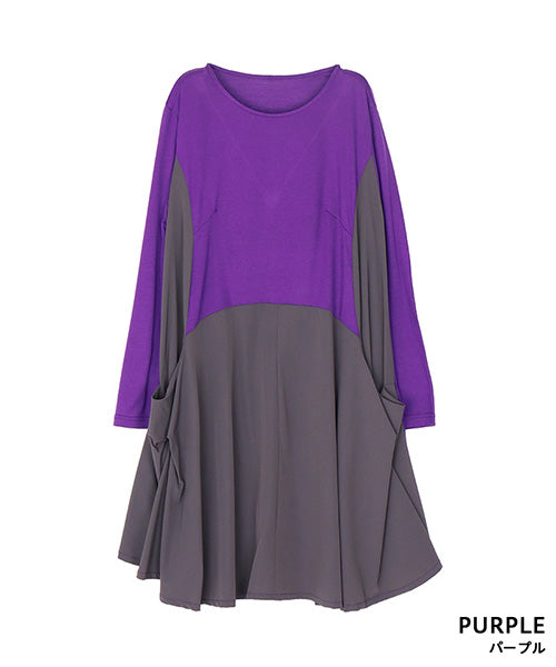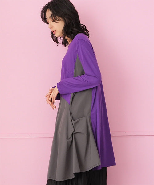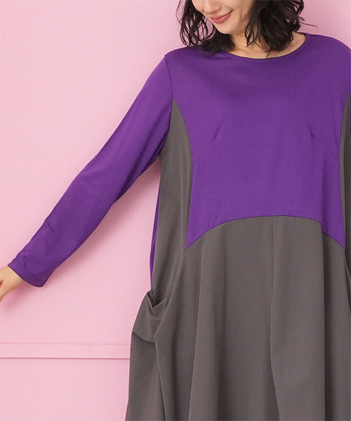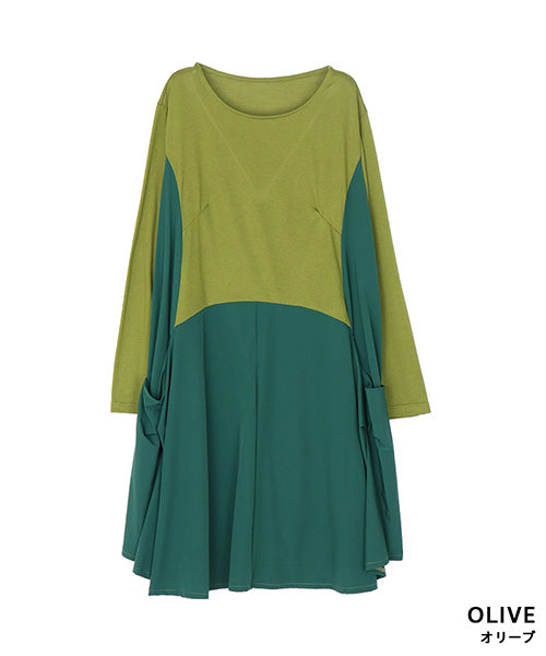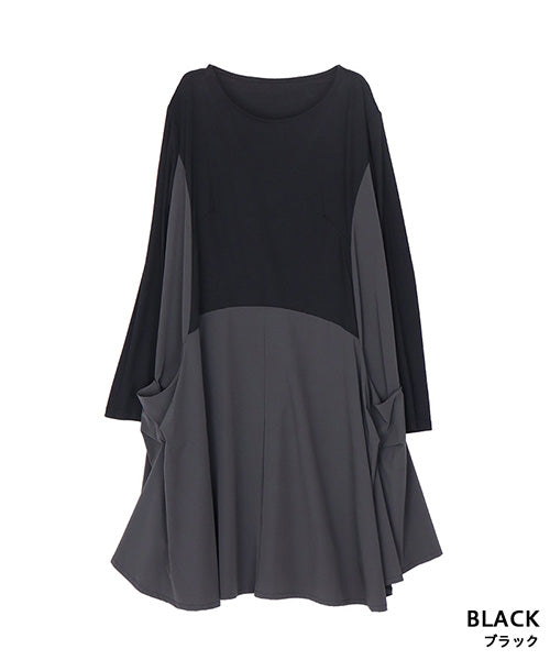 異素材で切り替えた配色デザインが印象的なワンピース。