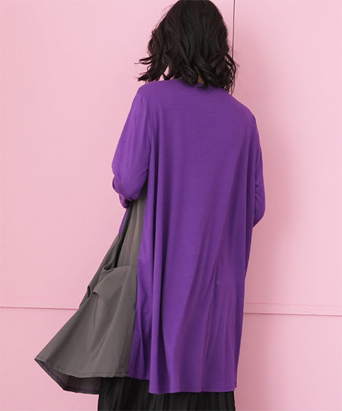 胸下で切り替えたデザインにより、自然なドレープと広がりのあるシルエットを生み出し、体のラインをやさしく包み込みます。