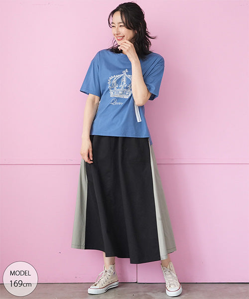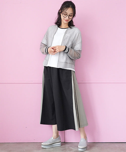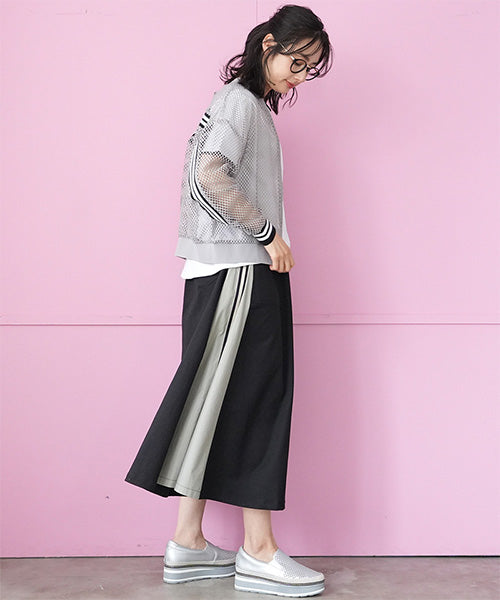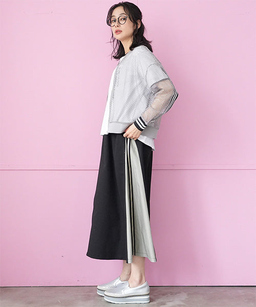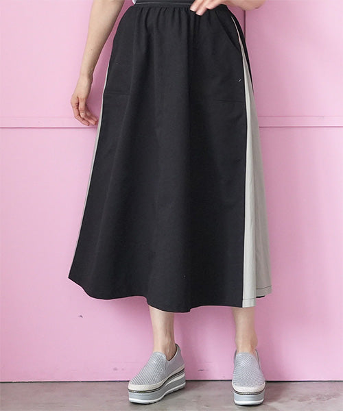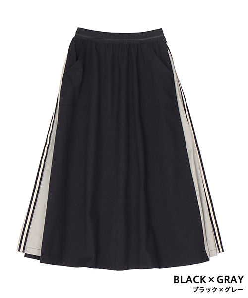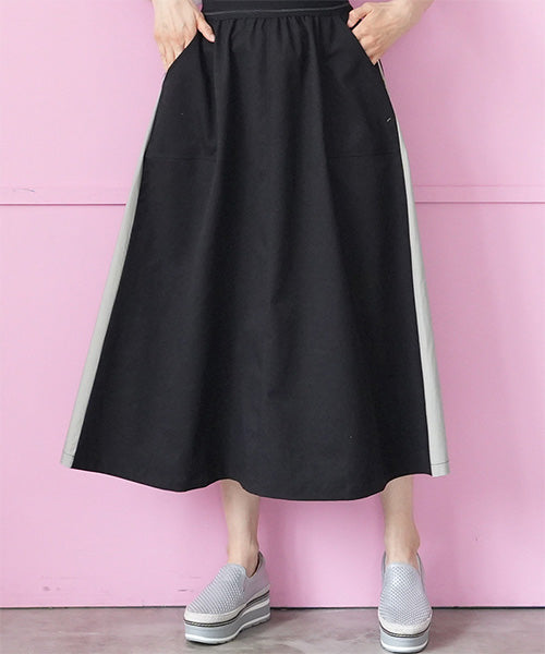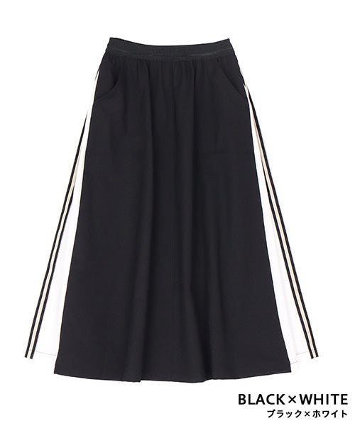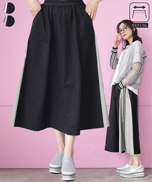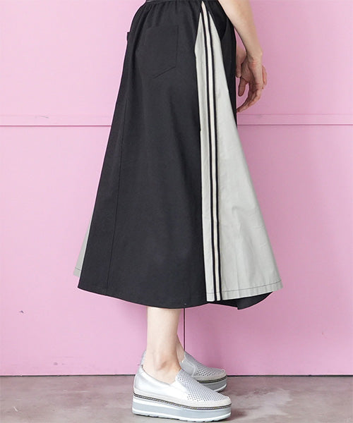 ウエストはスッキリとしたゴムベルトを使用し、モタつきを解消しました。 脇のバイカラー切り替えにストライプのテープをたたき、脚長効果を演出しました。 ボディラインを拾わないロング丈とAラインシルエットで、スタイルアップ効果を発揮します。 普通のカジュアルに収まらない、こだわりのデザインでお洒落を格上げします。