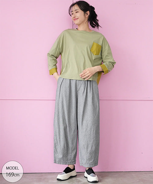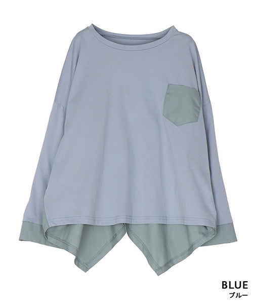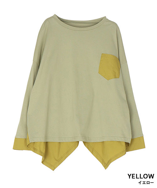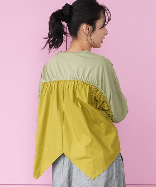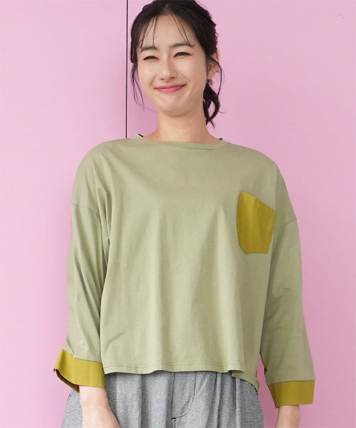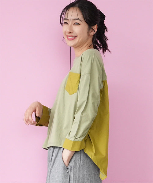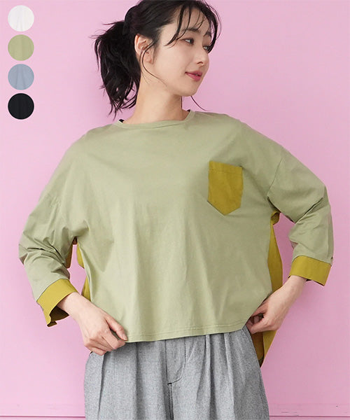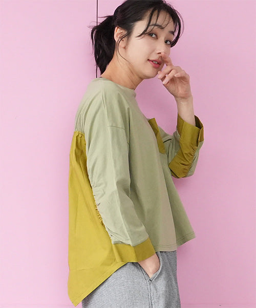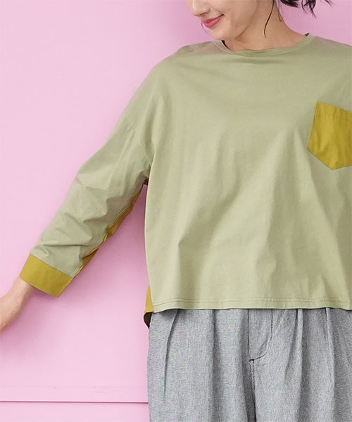 異素材・バイカラー切り替えの遊び心が胸躍る、ショート丈カットソーです。