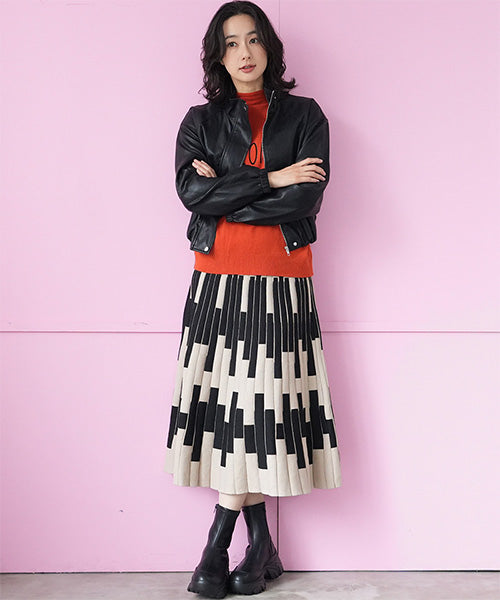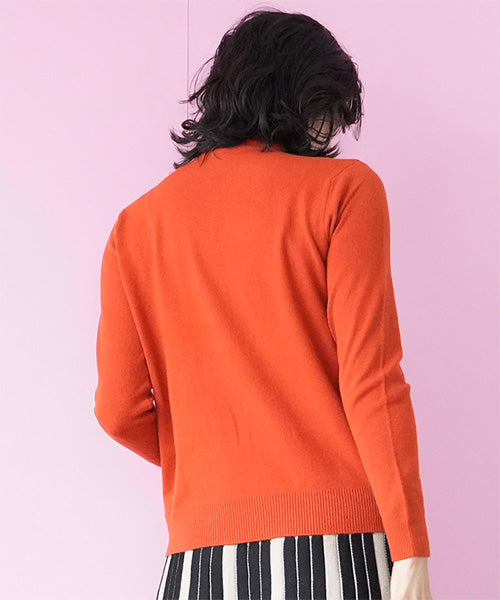 やや高めのハイネックで首元をすっきり見せつつ、優しい肌触りのニット素材で着心地も◎