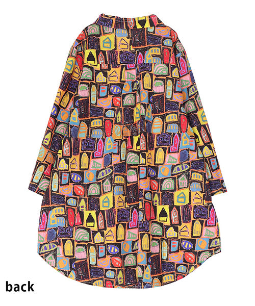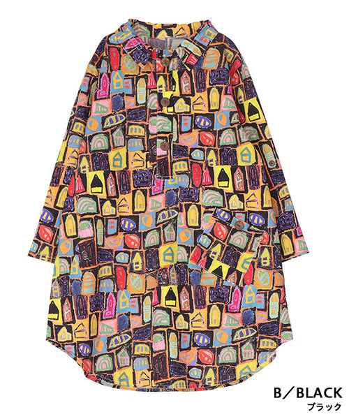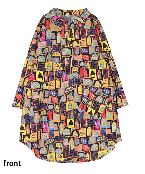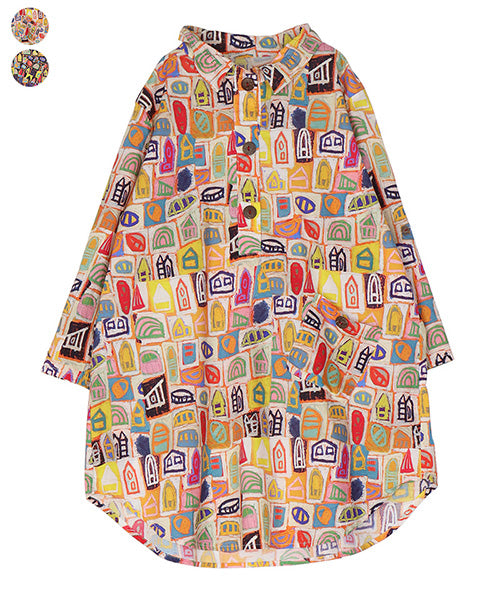 クレヨンで描いたようなイラストプリントが目を引く、綿100%のプルオーバーシャツです。