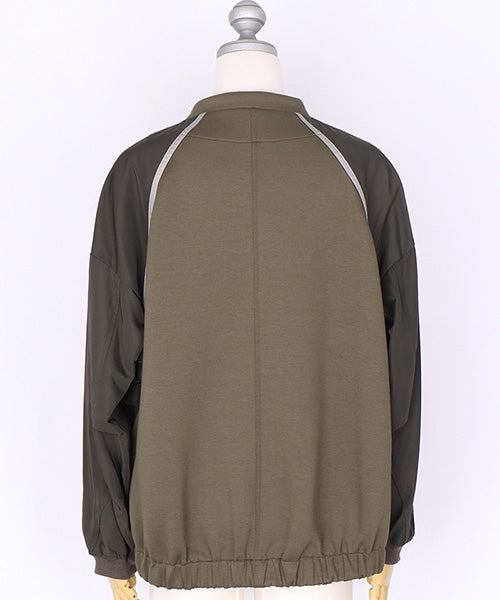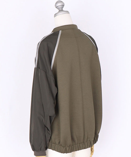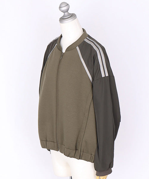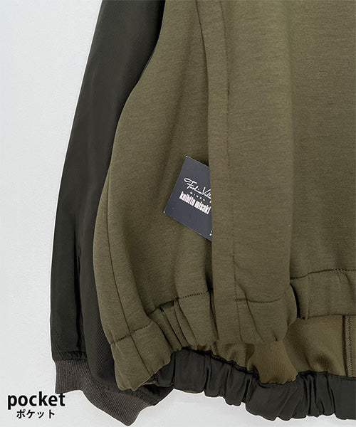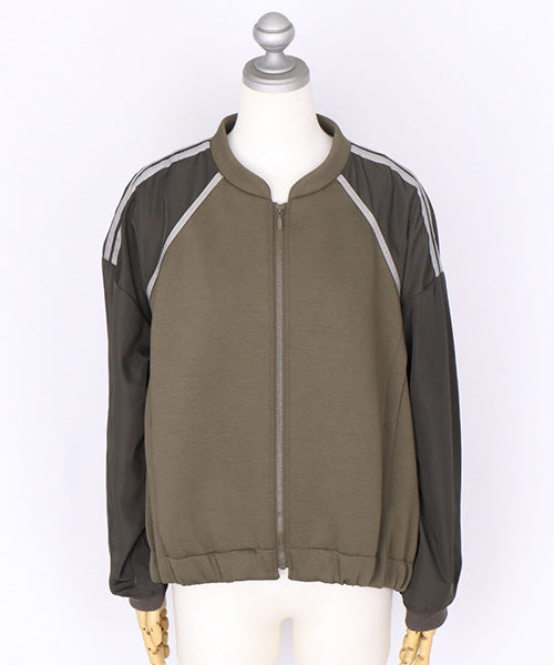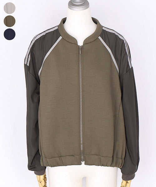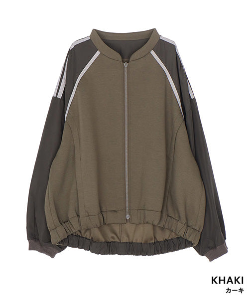 異素材切り替えが特徴のジップアップジャケット。 伸縮性のあるダンボールニット生地を使用し、窮屈感なく快適に着用いただけます。 丸みのあるシルエットが体型を選ばないのも嬉しいポイント。 カジュアルなデザインがデイリーユースにぴったりなアイテムです。
