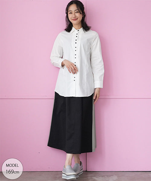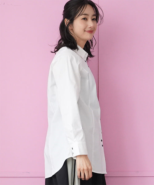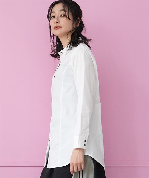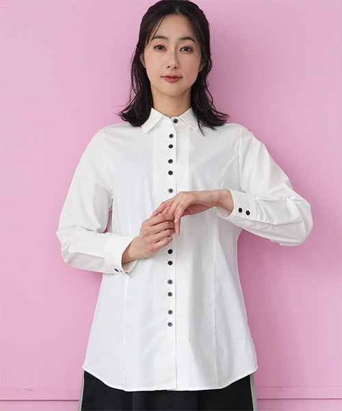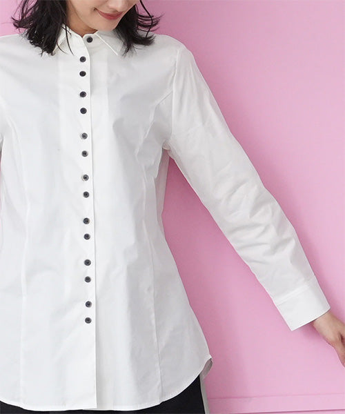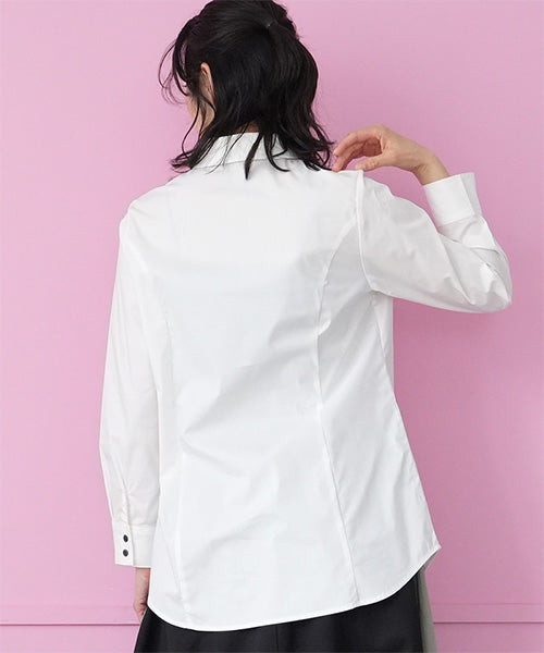 少しウエストシェイプ気味のスタンダードなシャツブラウスです。