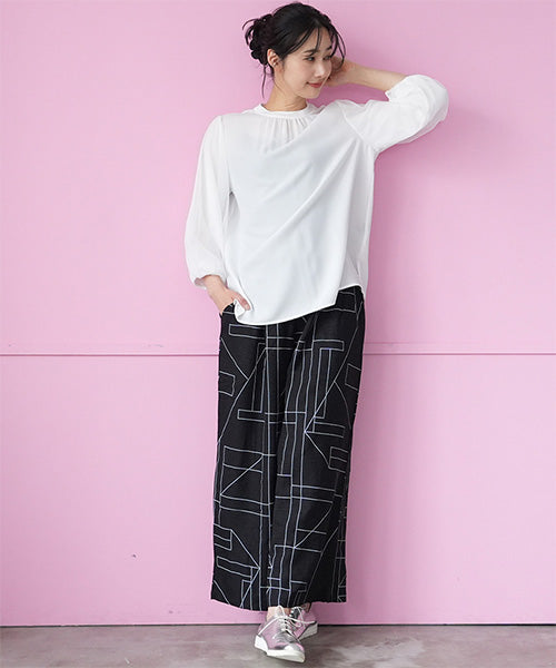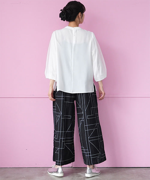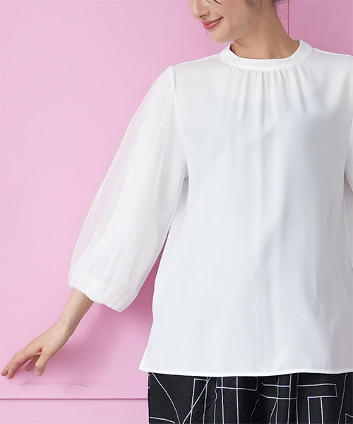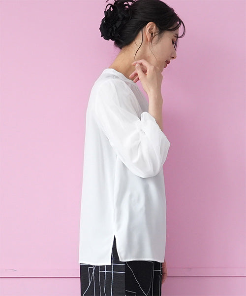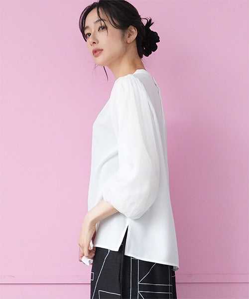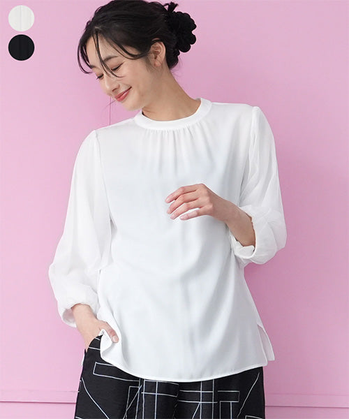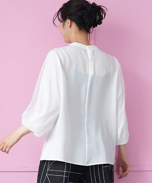 シフォン生地を用いた、とてもエレガントなプルオーバーブラウスです。