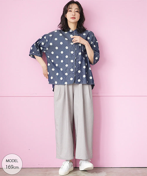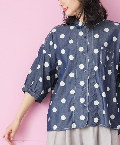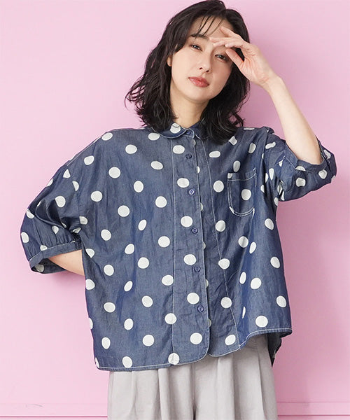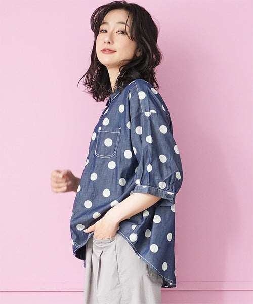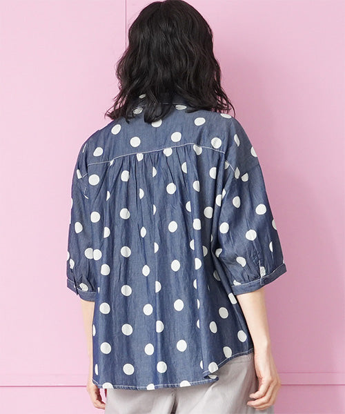 ホワイトカラーのドットプリントとステッチが映えるブラウスチュニックです。
