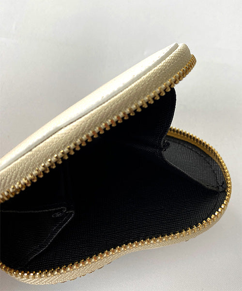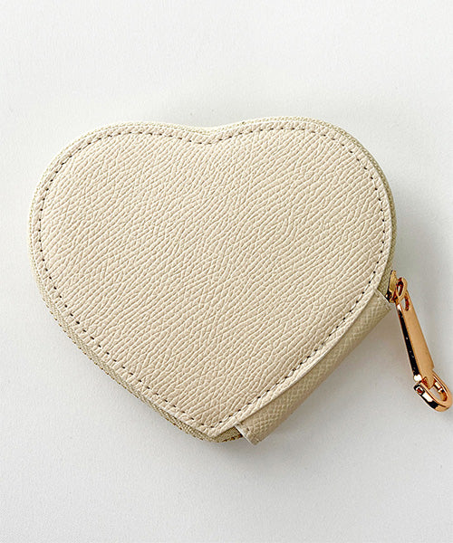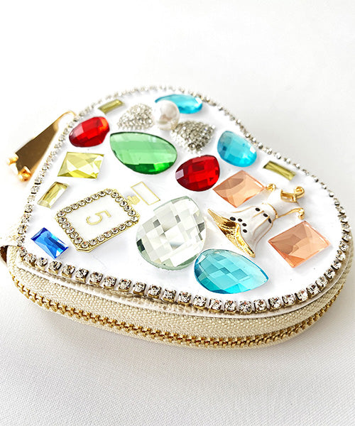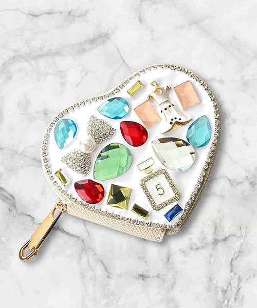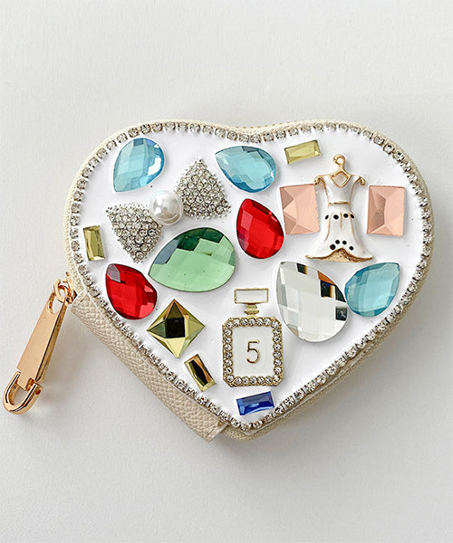 キラキラ輝く香水瓶のモチーフなどが散りばめられたハート型のコインケース。